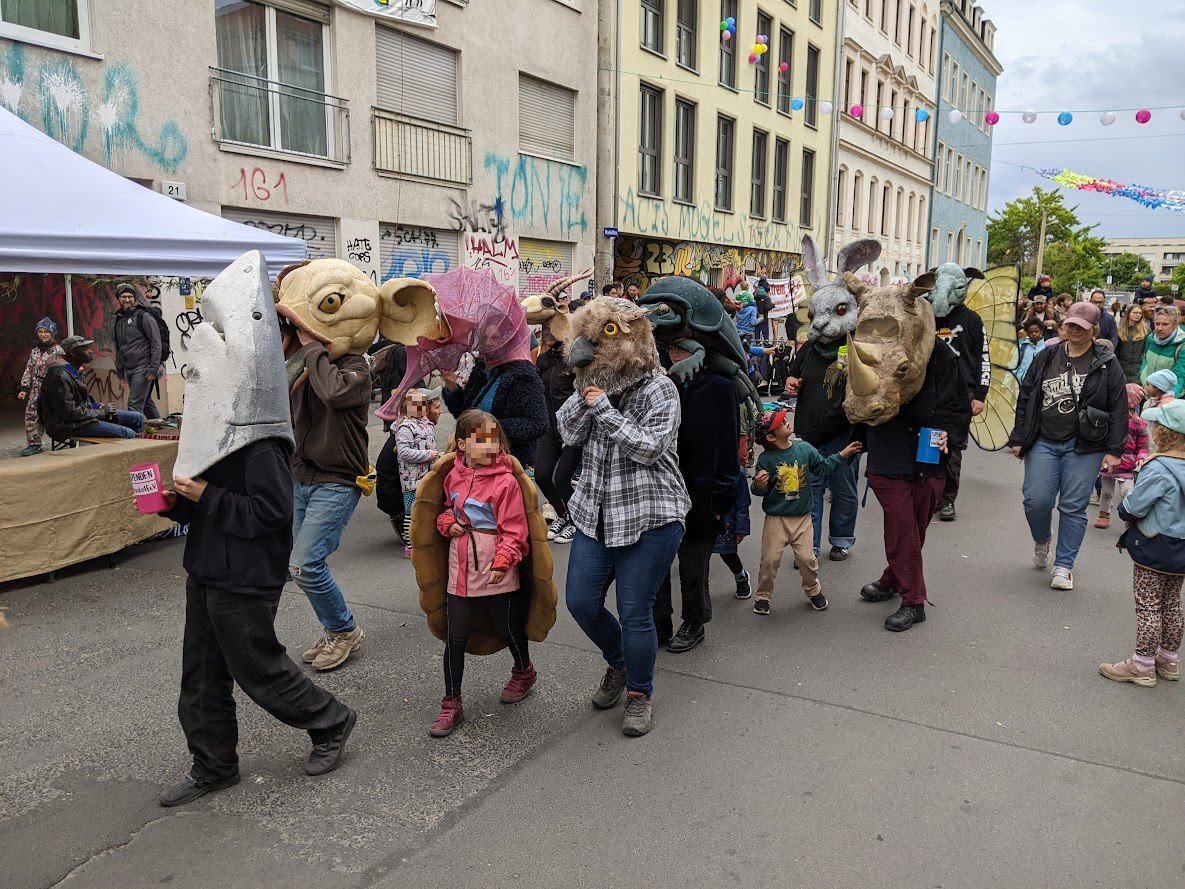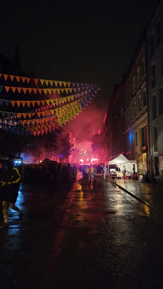 Wir waren voll und ganz begeistert und finden, dass es wieder ein wunderschönes Nachbarschaftsfest war. Hunderte Nachbar*innen, Freund*innen und Interessierte waren trotz Regenwetters dabei und haben mit uns gefeiert, geschlemmt, getrödelt und eine tolle Zeit verbracht. Auch die rege Beteiligung in der Nachbarschaft – sei es beim Organisieren von Ständen oder beim Dekorieren der Hauseingänge – fanden wir großartig.